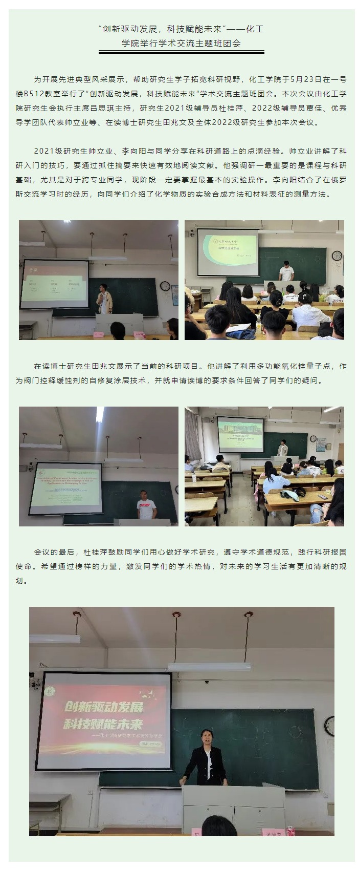 “创新驱动发展,科技赋能未来”——化工学院举行学术交流主题班团会