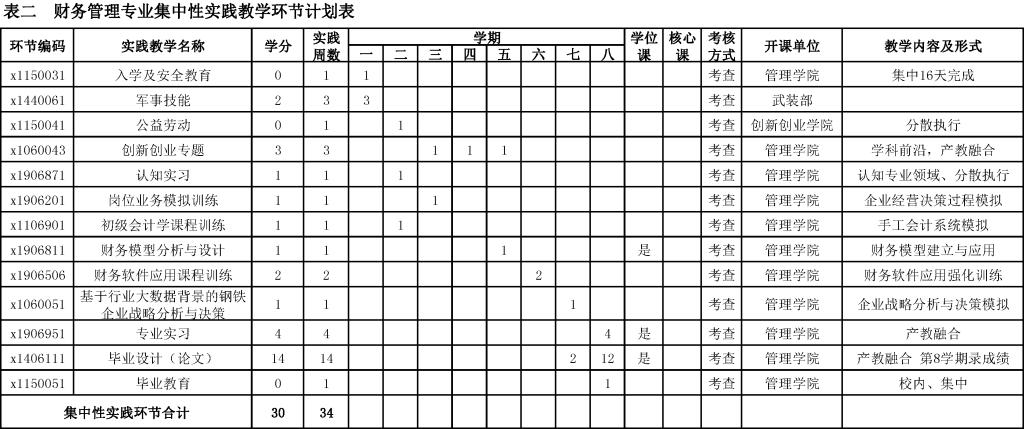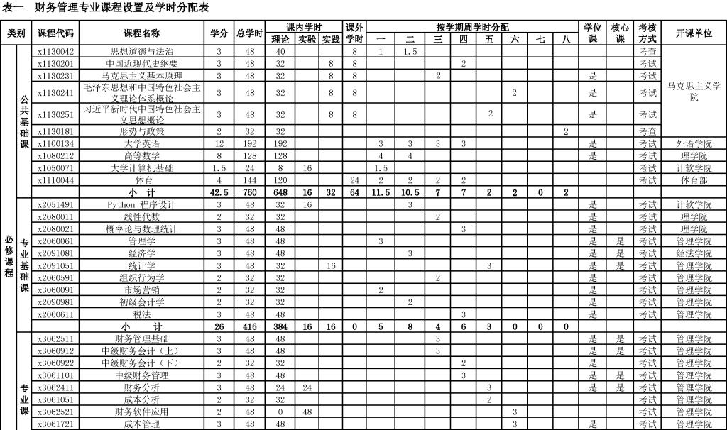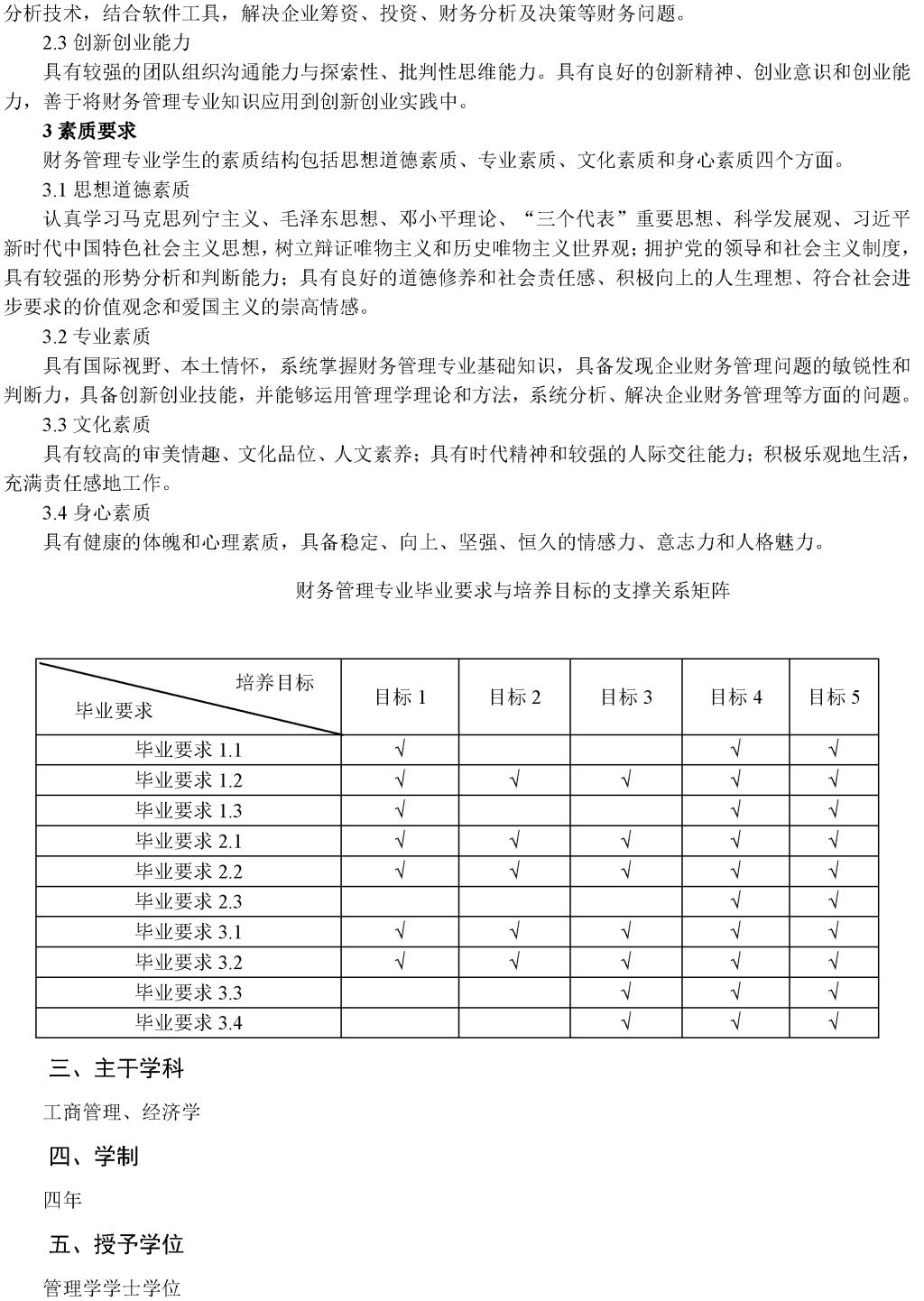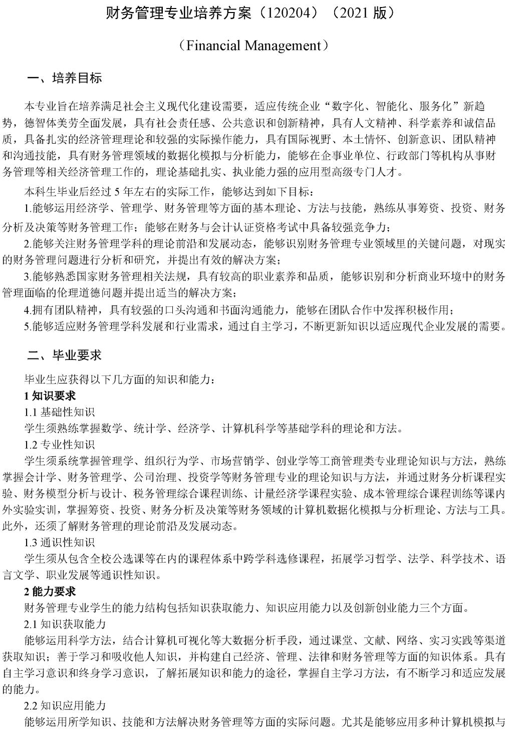 财务管理专业培养方案