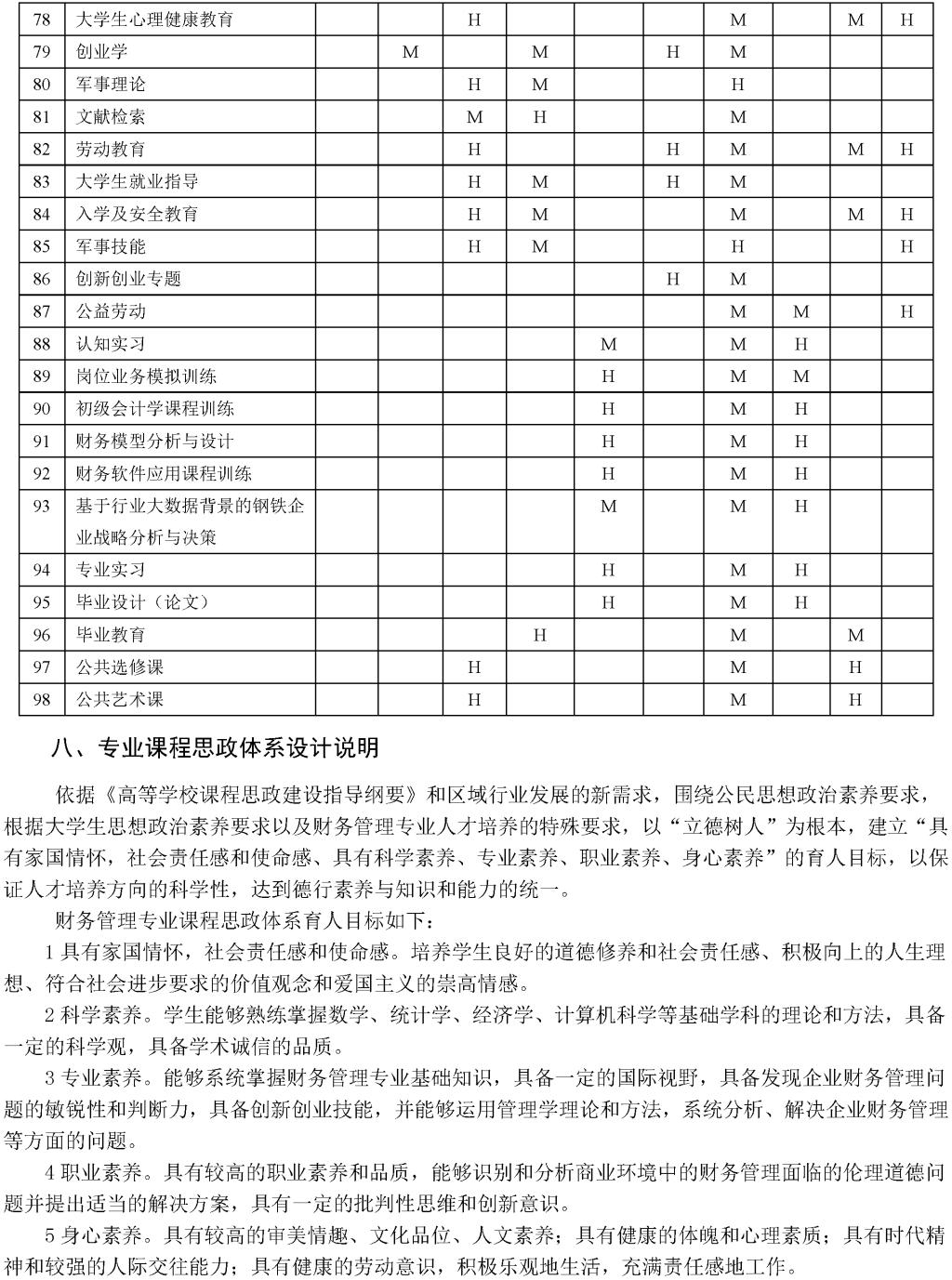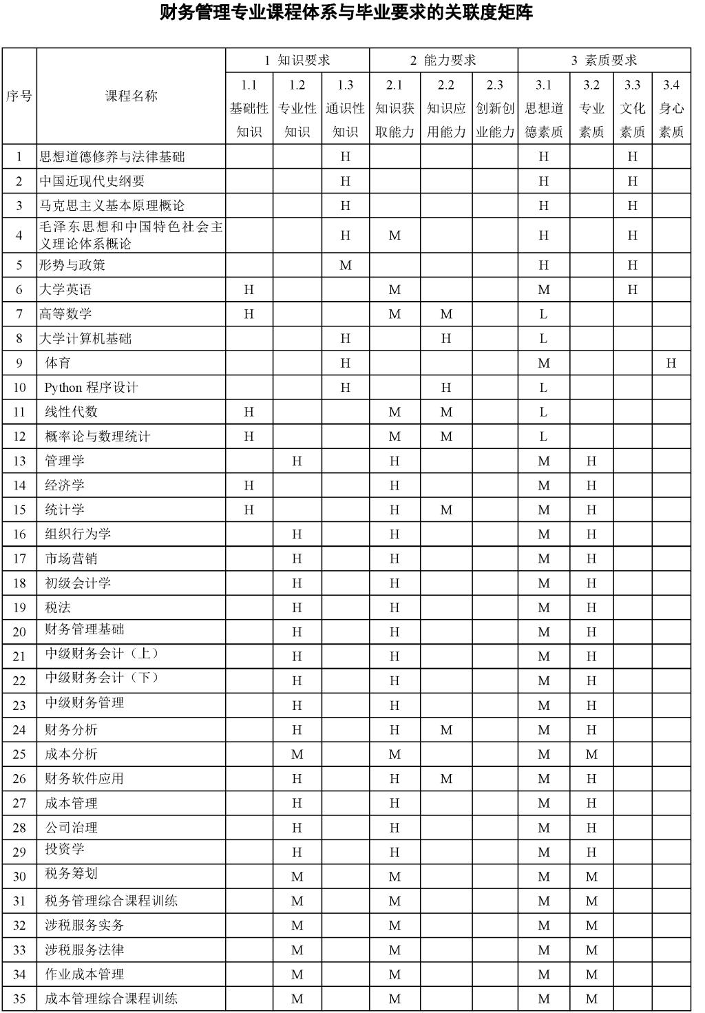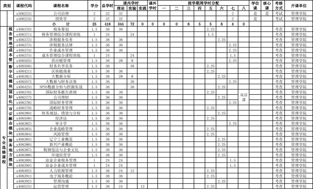 财务管理专业培养方案