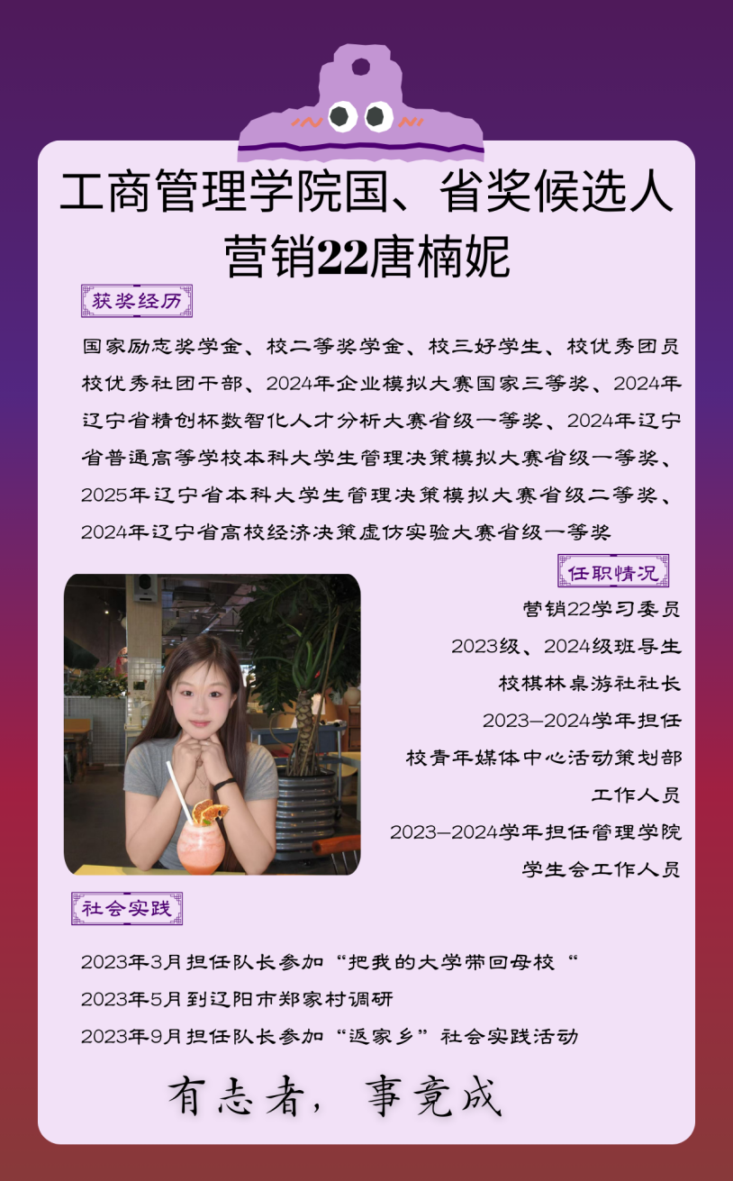 候选人:工商22周双婷