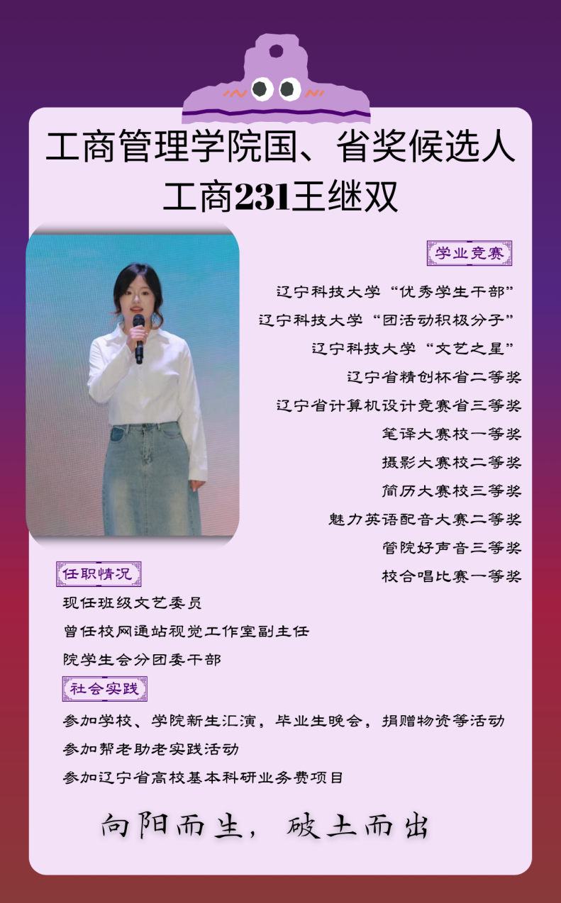 候选人:工商231王继双