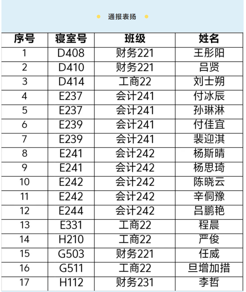 希望大家向优秀寝室、通报表扬同学学习。宿舍是一个温馨的港湾,它的整洁干净离不开大家共同的努力,让我们一起努力创造一个有序、卫生的生活环境。