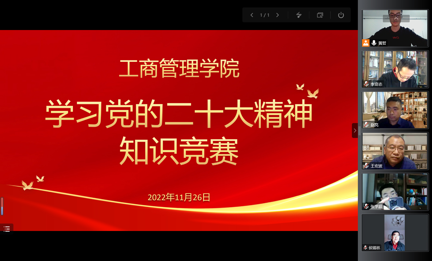 为认真贯彻落实《中共时博官网平台委员会关于深入学习宣传贯彻党的二十大精神的方案》工作要求,促进学院师生深刻领会党的二十大提出的新思想新论断、作出的新部署新要求,管理学院于11月26日晚开展“以赛促学、以学促干”学习党的二十大精神知识竞赛活动。赛前学院党委书记董文武强调,师生们要以本次知识竞赛为契机,充分学习、认真答题,确保把学习贯彻党的二十大会议精神付诸于行动、见之于成效。