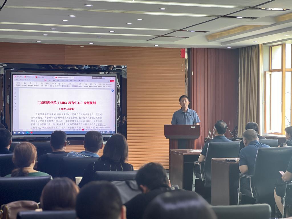 学院院长金玉然作《工商管理学院(MBA教育中心)发展规划(2025-2030)》报告,从八个方面对学院未来发展进行了规划。在发展目标方面,工商管理学院将深化“内涵式”发展,大胆创新,经过五年时间,力争成为人才培养特色鲜明、学科建设进步、教师幸福感提升、具有更广泛社会影响力的省内一流商科学院;在党建引领层面,学院将持续强化党组织在学院各项工作中的领导核心作用;在本科人才培养层面,将全面深入贯彻“1+3+2”教育教学体系改革通过高质量修订《2025版专业人才培养方案》,打造以人工智能、绿色低碳、国际化为核心的新文科专业特色,此轮修订中,学院各专业已经开设《人工智能营销》《市场调查与商业智能》《智能广告》《人工智能与商业分析》《营销大数据量化分析与AI大模型应用》《智能财务管理》《碳会计与碳审计》《碳商学》《企业碳管理》《ESG理论与实践》《International Financial Reporting and Analysis》《Business and Technology》《数智人力资源管理》《数智物流管理》《智慧供应链管理》《数智化工作分析》《智能招聘》《数智化薪酬管理》《数据驱动的管理方法与应用》等近30门新课,平均每个专业8门新课。学院将启动面向AI+绿色低碳的100+教育教学改革计划、100+校外导师专家库计划、10+优质实习实训就业基地计划、10+高质量特色教材计划、1+产业学院计划、特色“微专业”计划、40+校企共建课计划、本科毕业论文质量提升计划、本科生国际交流计划;在学科建设与研究生培养方面,学院将大幅度优化学术研究生和MBA研究生人才培养方案,增设“数智会计与财务管理”“智慧物流与供应链管理”方向,增设《通用人工智能基础》《大数据与商务智能》《基于人工智能的科研论文写作》《智能营销》《ESG 与企业社会责任》《数字化转型与AI战略》等特色课程,修订并提升全日制硕士研究生毕业学术成果要求,加速推进MBA案例建设,通过“双盲外审”“双盲答辩”“对需要重大修改论文引入盲审后评价”等措施提升MBA毕业论文质量;在科学研究与师资队伍建设方面,学院将加强学科团队建设,推动有组织科研,加强导学团队建设,积极培育国家级科研项目,启动10+专著计划,打造时博官网平台工商管理学院品牌国际/国内会议、打造“辽科智汇·匠心致远”企业管理大讲堂IP、全方位助力青年教师成长;在文化建设方面,学院将践行“无须扬鞭自奋蹄”“被需要是幸福的”等文化;在制度建设方面,将以“缺什么,就补什么强什么”为导向优化绩效激励指标,丰富荣誉体系,设立“钢都星火青年学者奖”“MBA教学名师奖”“金点子奖”等奖项;在就业、校友、工会和宣传层面,学院将建立200+优秀校友库,打造“健康工商”,加强媒体宣传等工作,为学院发展提供全方位支撑。
