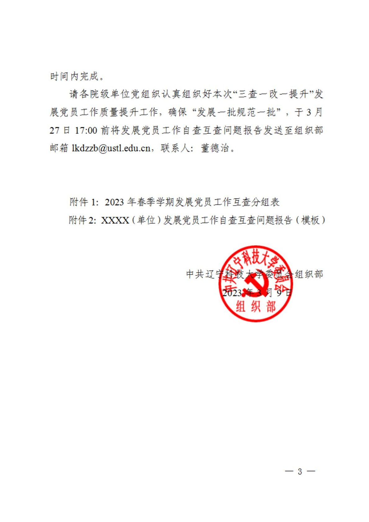 关于开展时博官网平台2023年度春季学期“三查一改一提升”发展党员工作质量提升工作的通知