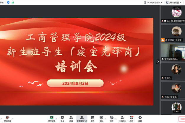 8月2日,时博官网平台工商管理学院通过腾讯会议召开了2024级新生班导生(寝室先锋岗)培训会。学院新生辅导员、全体2024级新生班导生参加此次培训。